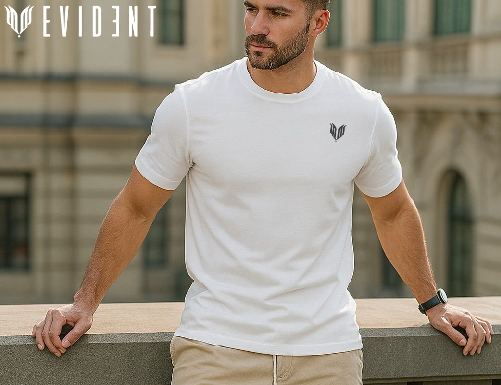 La camiseta EVIDENT Core Minimal Edition encarna la esencia del diseño moderno y sofisticado. Su corte limpio, su color blanco puro y el logo discreto en el pecho izquierdo la convierten en una prenda versátil y atemporal. Perfecta para quienes saben que menos es más.